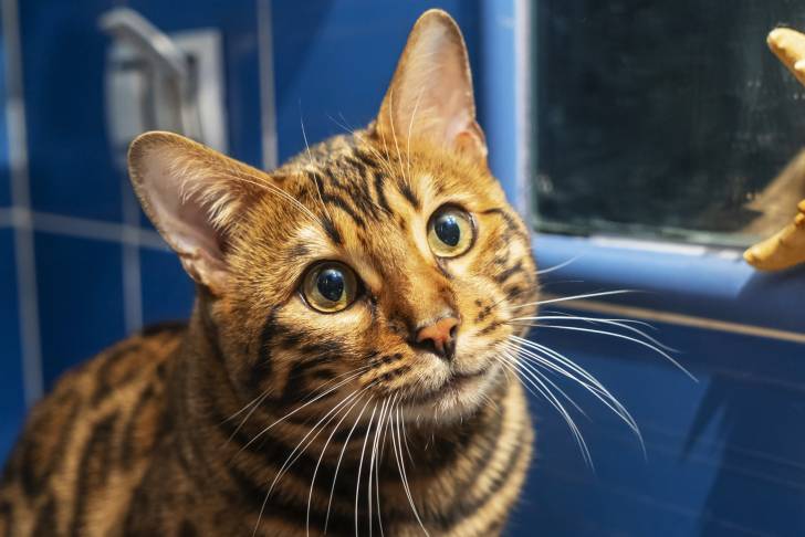 Vue proche d'un Bengal dans une salle de bains