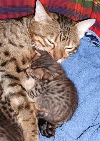 Moment de tendresse pour Talou et l'un de ses 6 chatons n?s le 27 mai 2005.