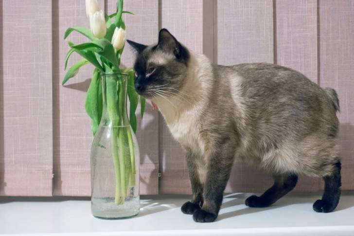 Un Bobtail du Mékong à côté d'un vase