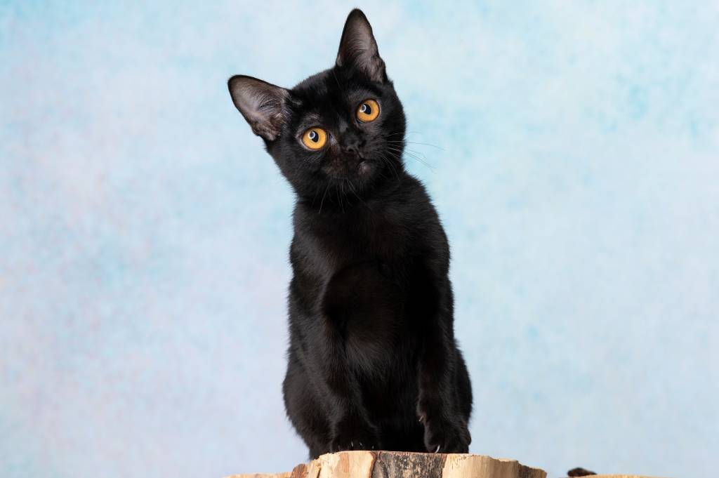 Un Bombay assis sur une buche de bois