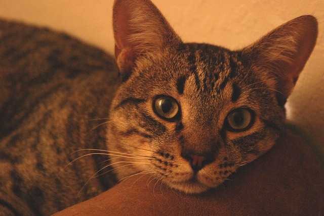 Un Californian Spangled est en train de se reposer dans la panière à linge