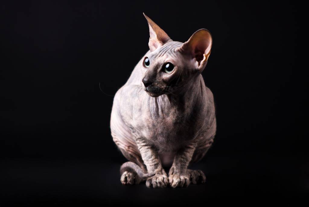 Un chaton Donskoy se fait dorloter