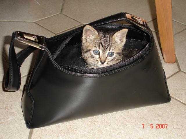 Chat réfugié dans sac à main pour échapper à Unzo....