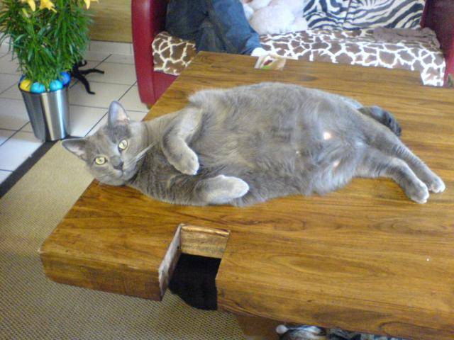 Moi je suis Tyson un croise chartreux age de 7 ans, je pese 10 kg et meme une vie cooll.