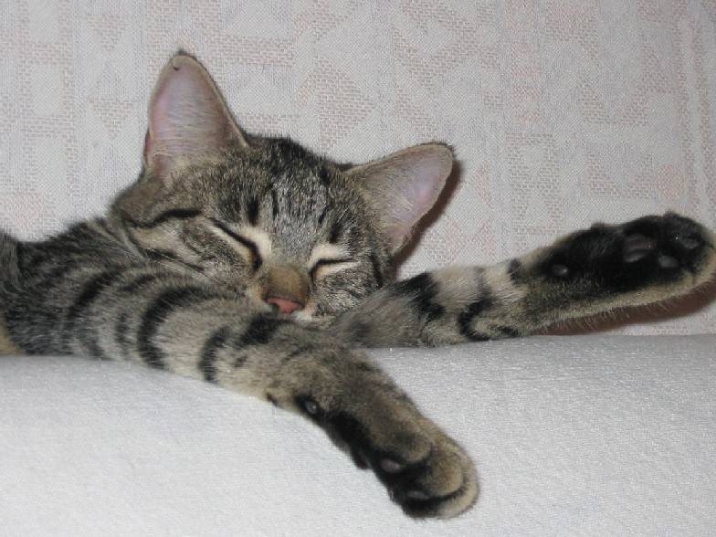 Titoune adore aussi le canapé et elle y dort dans des positions parfois étonnantes ! Autant dans l'arbre à chats et dort en boule et autant sur le canapé elle dort étendue de tout son long !