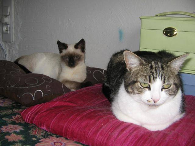 Photo de Pepette, européenne et bébé Louna, siamoise
