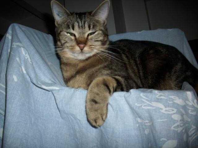 Madame fait sa princesse, elle dort toujours avec une patte en avant et n'aime pas etre dérangée, d'autant plus qu'elle dort sur le portant à linge !
