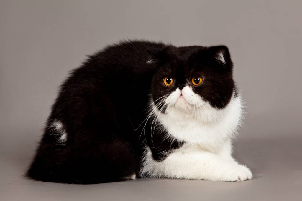 Chatte Exotic Shorthair qui joue avec un plumeau