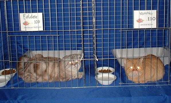 Je vous présente deux de mes chats.Celui de gauche c'est Merlin un Foldex de couleur chocolat argenté tigré classique et l'autre à droite c'est mon Calinours un Munchkin de type Napoléon de couleur roux pommelé,je les emènent souvent dans les exposition