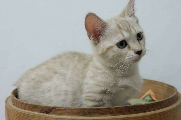 Un chaton Genetta fait ses besoins comme un grand