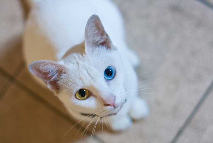 Vue du dessus d'un Khao Manee avec de beaux yeux vairons
