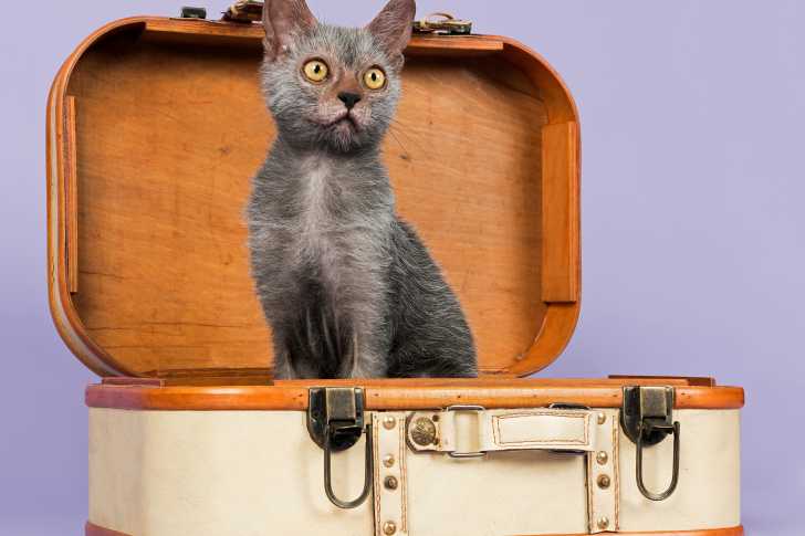 Un Lykoi qui vient d'être recueilli prend son premier bain