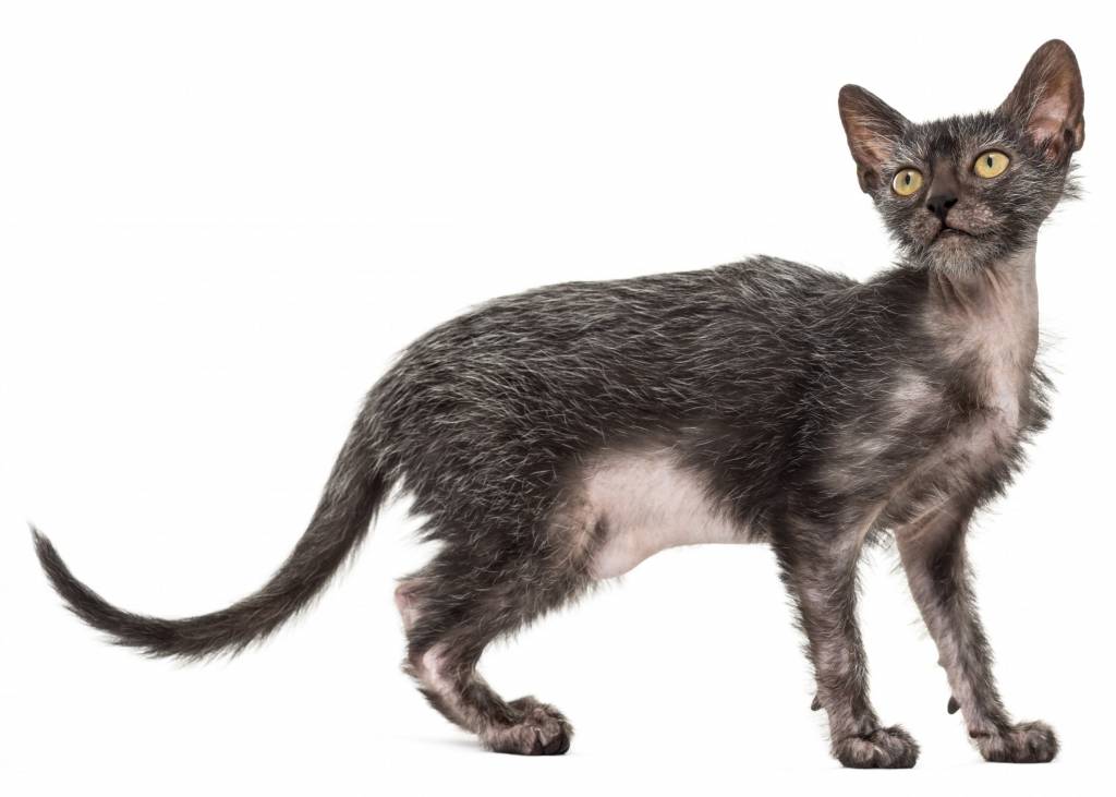 Un Lykoi qui vient d'être recueilli prend son premier bain