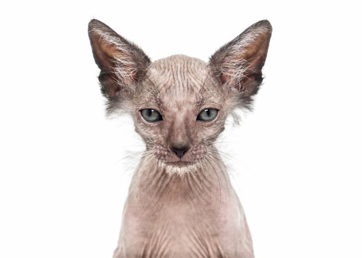 Un Lykoi qui vient d'être recueilli prend son premier bain