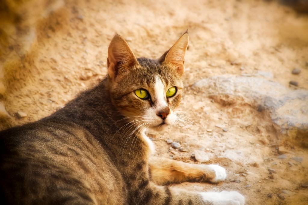 Un Mau Arabe qui ne se laisse pas impressionner par un Caniche