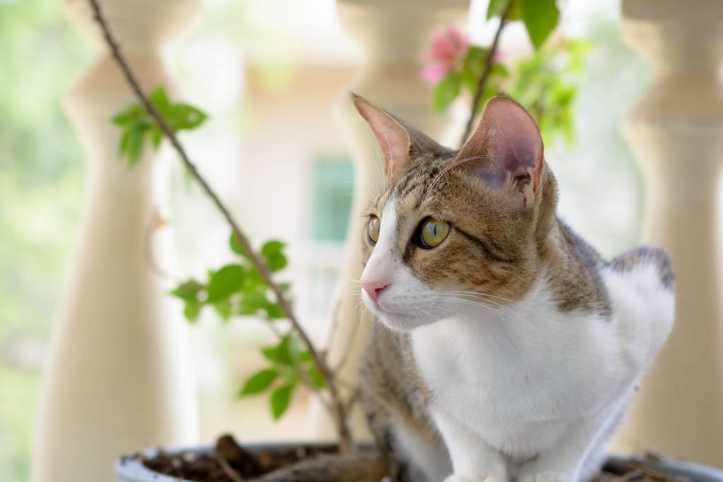 Un Mau Arabe qui ne se laisse pas impressionner par un Caniche
