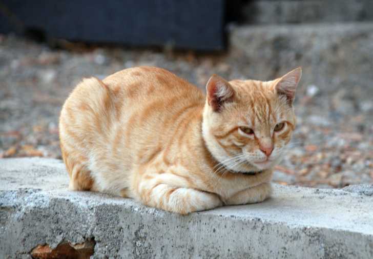 Un Mau Arabe red tabby assis sur un muret