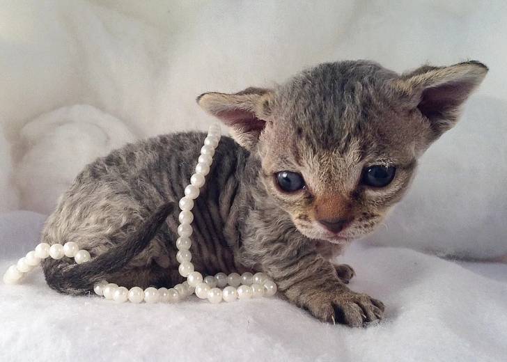 Une jeune chatte Minskin s'occupe de ses frères et sœurs
