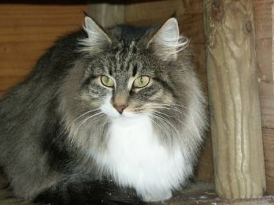 Rania est une chatte norvégienne extrêmement sensuelle, elle a un caractère en Or ! Sa couleur est Brown mackerel tabby et blanc et elle est Championne Internationale FIFé.
