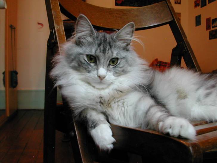 Norvégien Black silver tabby mackerel et blanc, 1 an