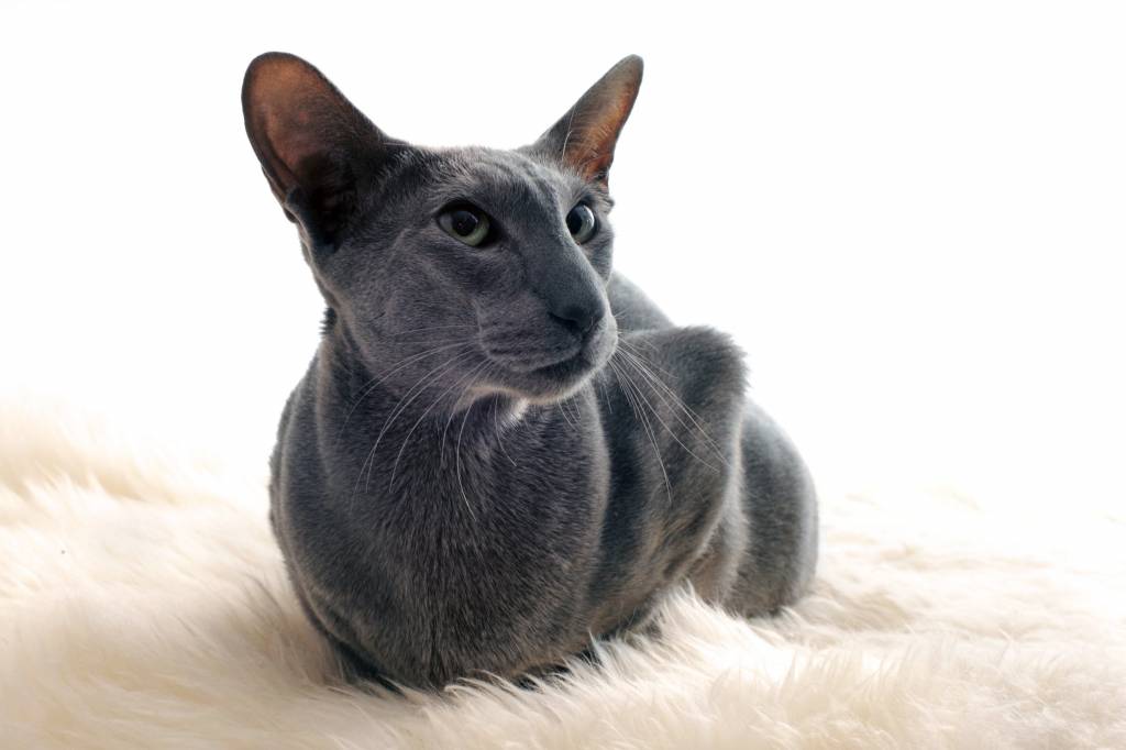 Un Oriental Shorthair gris allongé