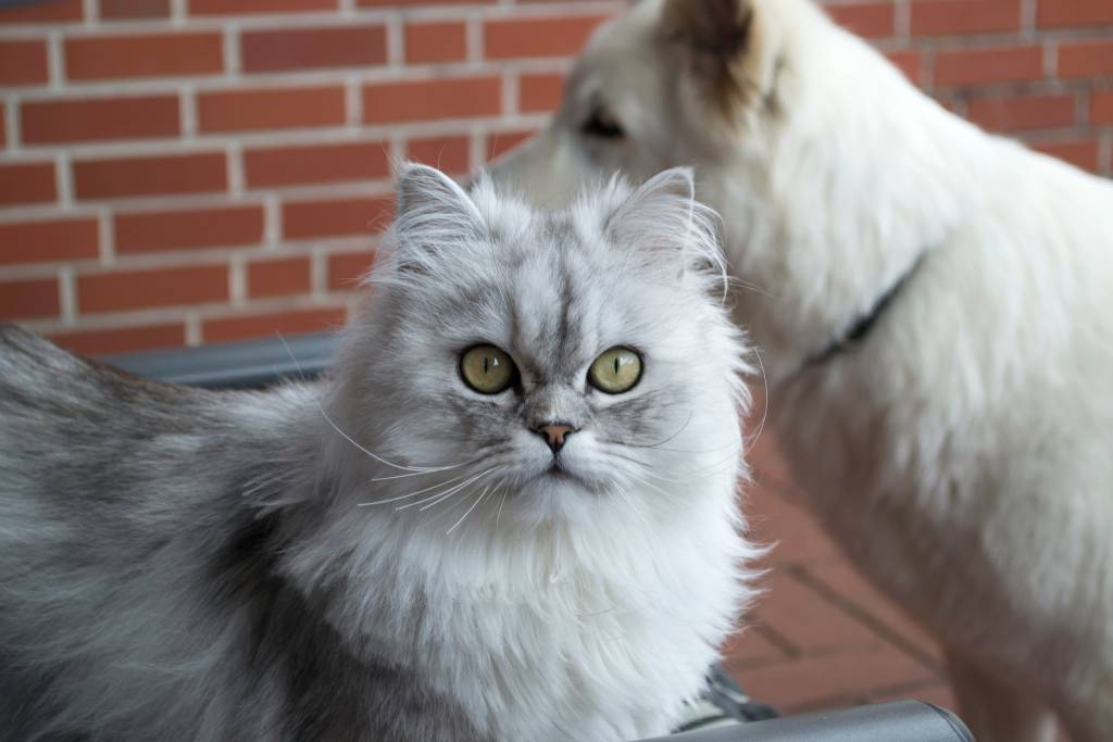 Un Persan et un chien  en extérieur