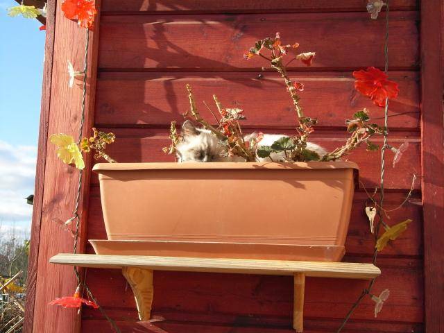 Une petite sieste dans le géranium... avant de renverser la jardinière sur la terrasse.