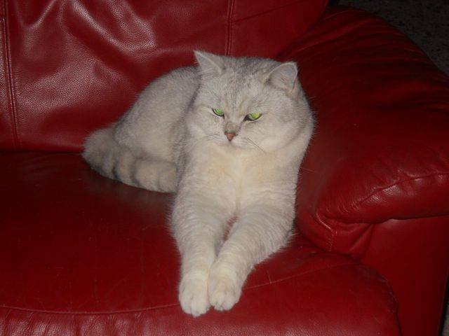Elmer vient d'avoir 2 ans. C'est un gros matou très calme, vif, curieux et très intelligent, signes prédominants de cette race. De plus, j'ai beaucoup de chance, il ne marque pas, ouf!