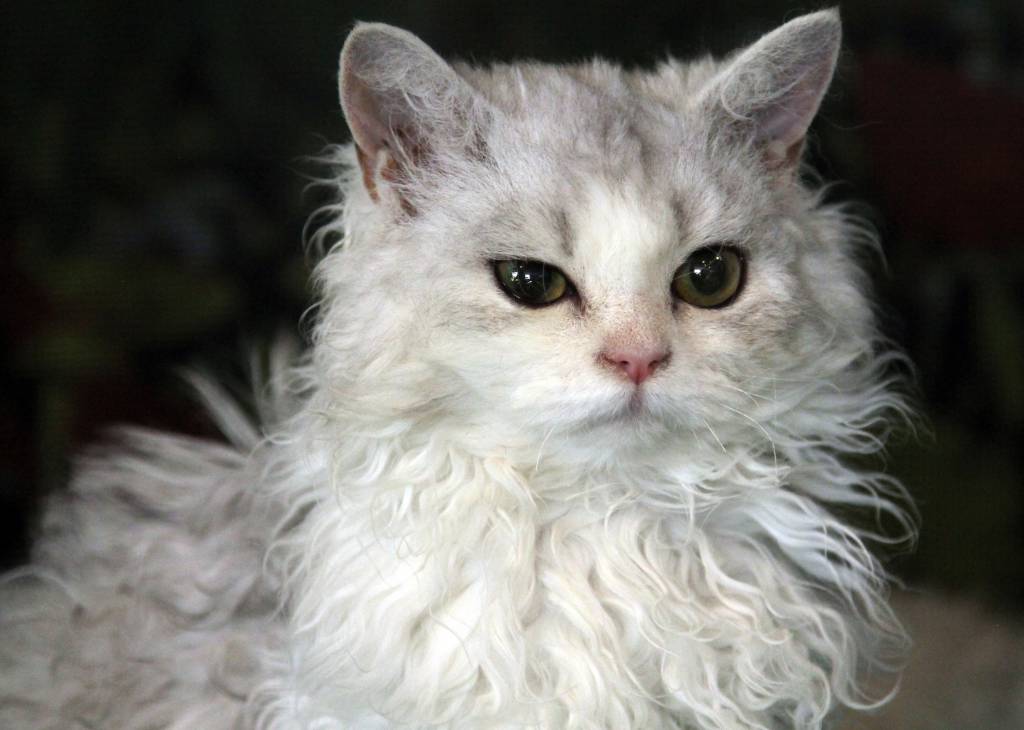 Un Selkirk Rex gris et blanc
