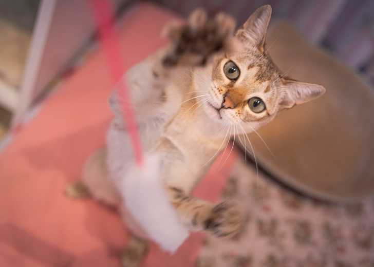 Un Singapura montre ses talents de grimpeur sur une fenêtre