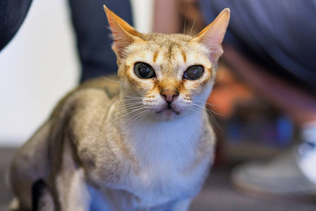 Un Singapura montre ses talents de grimpeur sur une fenêtre