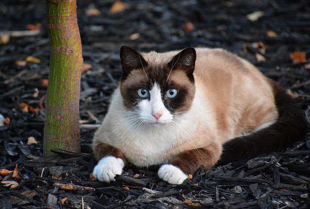 Un chat Snowshoe réclame des câlins