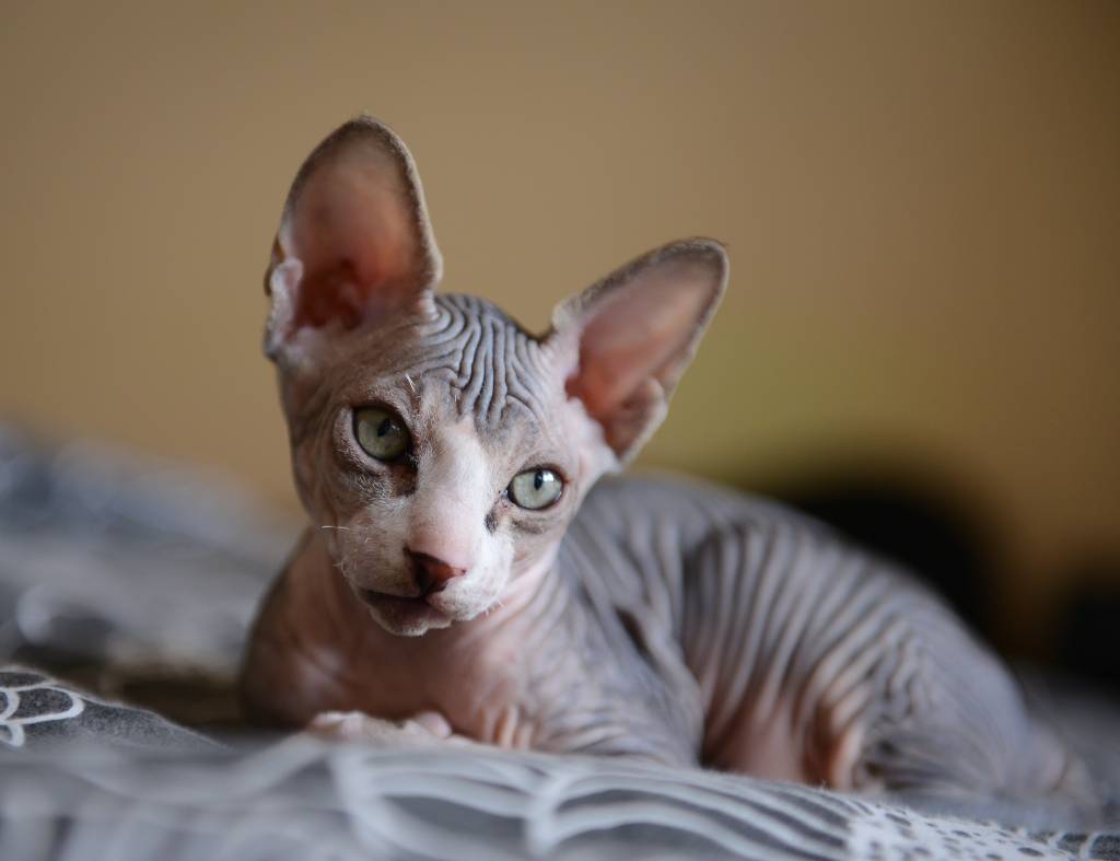 Un chaton Sphynx prend un bain