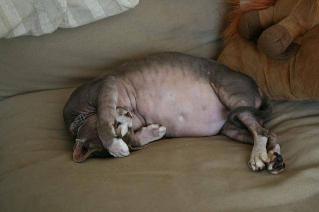 Ugo, mâle sphynx mais c'est plutôt un ...phoque, il pèse plus de 7 kg!