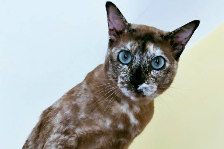 Un Tonkinois tacheté assis face à l'objectif