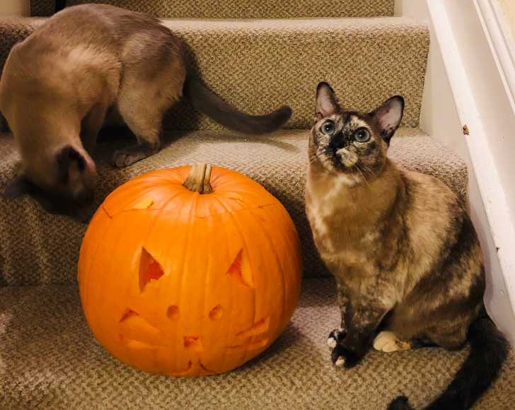 Des Tonkinois qui posent à côté d'une citrouille