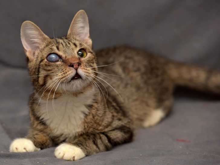 Si, lorsque vous examinez les yeux de votre chat, vous apercevez un voile blanc ou bleu, cela peut être le signe qu'il est atteint par la cataracte.