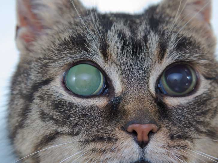 Dans la phase avancée, les symptômes du glaucome sont beaucoup plus alarmants : on constate ainsi une fermeture des paupières, des larmoiements, une rougeur de l’œil ainsi qu’un reflet flou et/ou bleuté sur la cornée. La maladie est très douloureuse et fait beaucoup souffrir le chat atteint.
