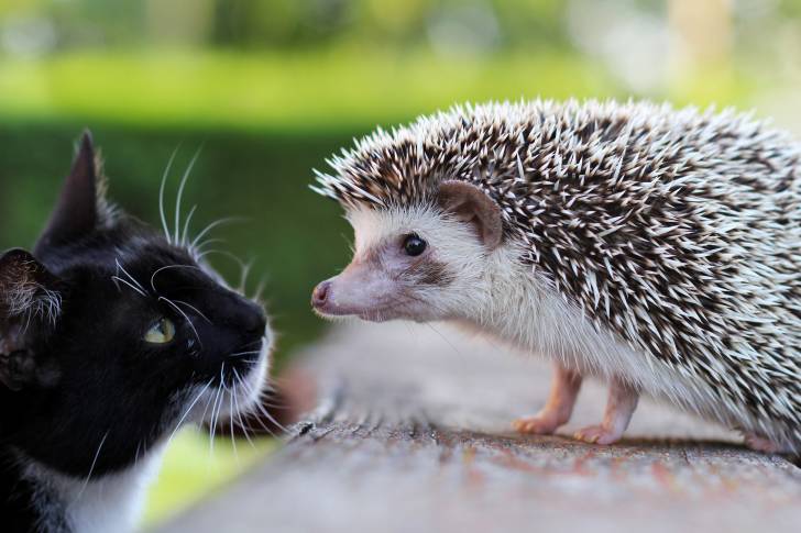 Les hérissons sont des petits animaux sympathiques que l'on a de grandes chances de croiser un jour ou l'autre, par exemple dans des parcs ou des jardins. Ils se protègent contre les prédateurs à l'aide de leurs épines : c'est ce qui explique qu'un chat évite généralement de s'y frotter. C'est plutôt une bonne chose, car en plus du risque de blessure légère, il existe alors également un risque de transmission de maladies et de parasites. Heureusement, si on prend quelques précautions, la cohabitation devrait bien se dérouler.