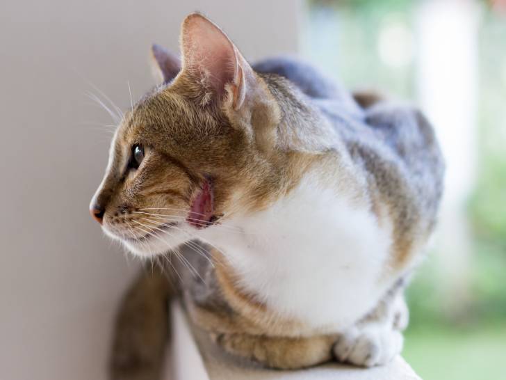 En général, une plaie est douloureuse (en tout cas au début) et démange lorsqu’elle commence à cicatriser : il y a donc des chances que le chat ait alors très envie de se lécher à ce niveau – en plus de sa toilette habituelle, qu’il réalise normalement plusieurs fois par jour.