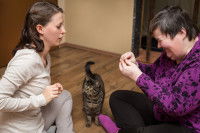 Par la suite, il est courant que le comportementaliste assiste aux premières séances de zoothérapie, afin d'observer les réactions du chat et d'aider le thérapeute à les interpréter. En effet, la zoothérapie est un réel exercice d'équilibriste, qui consiste à aider les patients tout en préservant le bien-être du chat.