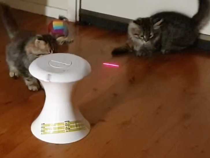 Les accessoires pour jouer avec un chaton sont multiples. Dans cette vidéo, des chatons de race Sibérien sont totalement fous d'un laser. En effet, le propriétaire utilise l'objet pour stimuler les petits félins qui semblent adorer ce jouet.