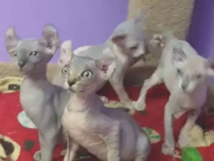 Cette vidéo montre la complicité de petits félins de race Elf-Cat en plein moment de jeu. En effet, ils grimpent sur un arbre à chat et certains jettent alors un regard curieux sur leur environnement ou en direction de la caméra. Voir des chatons cohabiter peut s'avérer réjouissant pour leur propriétaire, car ils s’entendent généralement bien et jouent beaucoup.