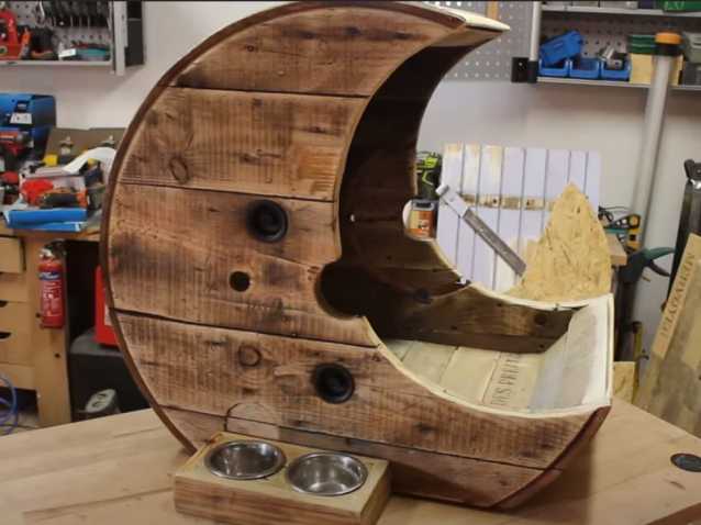 Attention, il s'agit là d'une réalisation s'adressant au bricoleur bien équipé et disposant de préférence d'un atelier. L'idée est de recycler une bobine de chantier pour en faire un panier pour chat ou pour petit chien. L'accueillante et protectrice forme en lune devrait plaire à la plupart des petits compagnons.
