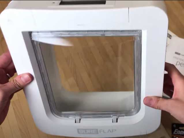 Cette vidéo présente une chatière électronique grande taille – pour les petits chiens – accompagnée de son hub de connexion pour la relier à l'application à installer sur son téléphone portable. Cet appareil reconnaît la puce électronique posée par le vétérinaire pour identifier les animaux autorisés à l'utiliser.