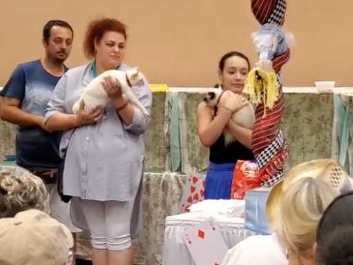 Cette vidéo montre la race Bobtail du Mékong qui est représentée lors d'une exposition féline.