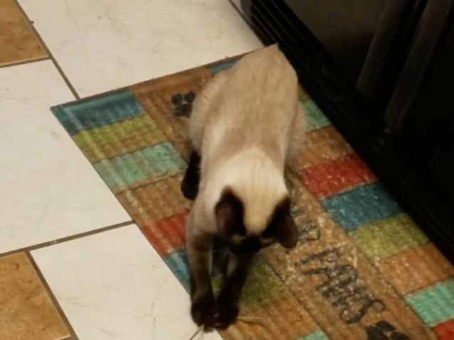 Cette vidéo montre un chat de race Bobtail du Mékong en train de jouer avec son jouet préféré : une ficelle. En effet, le félin est complètement fou de ce petit bout de fil et joue avec une vive énergie. Il saute sur l'accessoire, essaie de l'attraper avec ses pattes et le déplace dans la pièce.