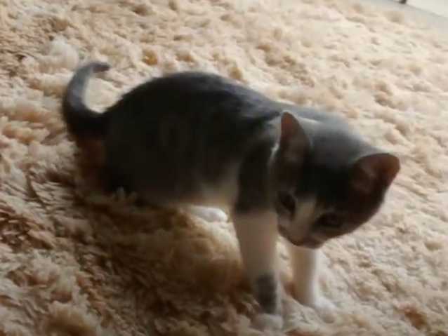 Cette vidéo montre un très mignon chaton de race Brazilian Shorthair en train de jouer sur le tapis avec son propriétaire. En effet, le petit félin s'amuse avec un jouet en forme de balle et semble passer un moment très agréable.
