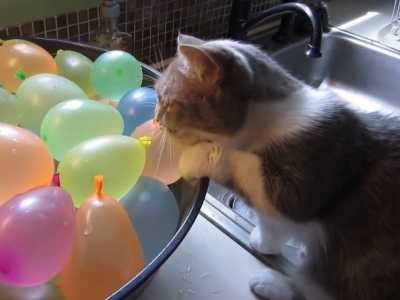 Votre petit dernier fête son anniversaire et vous avez gonflé des dizaines de ballons de baudruche pour la déco ? Si vous avez un chat, surtout pensez bien à mettre les ballons à l'abri, car fidèles à leur réputation de grand curieux ils n'hésiteront pas à y mettre leurs griffes... Pour un résultat explosif ! Un exemple avec ce Munchkin, qui ne semble même pas effrayé par les bruits d'explosion.