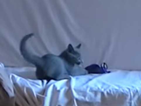 Cette vidéo montre un chaton de 11 semaines de la race Bleu Russe en train de jouer. En effet, le petit félin joue comme un petit fou avec un morceau de laine. Très câlin, il opte même pour une petite session de tendresse auprès de son maitre : une vidéo remplie d'amour !